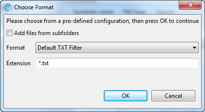 4. If the added folders contain files of multiple formats, the Choose Format Dialog box appears. Choose the format for the files to be analyzed. Only one format can be selected at a time.