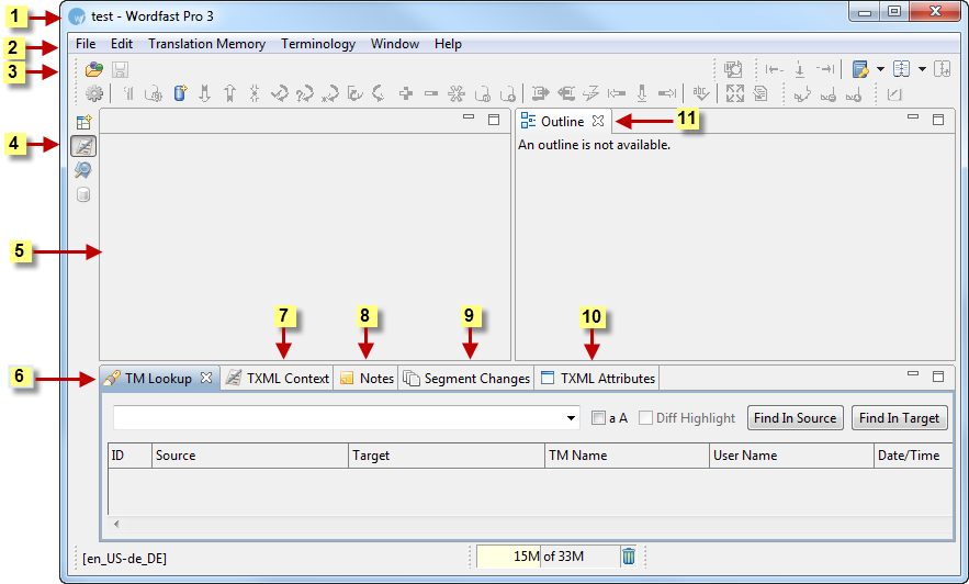 translate a file. This is the work space for translating files. Refer to Translating in a project. |