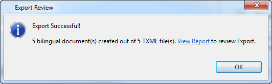 The Bilingual export option allows you to export the bilingual document file into DOC format, edit using Microsoft Word, and import the DOC file back into the TXML file.