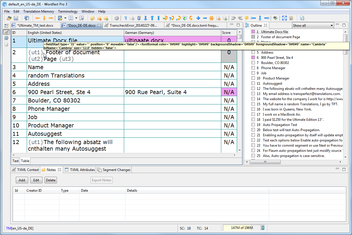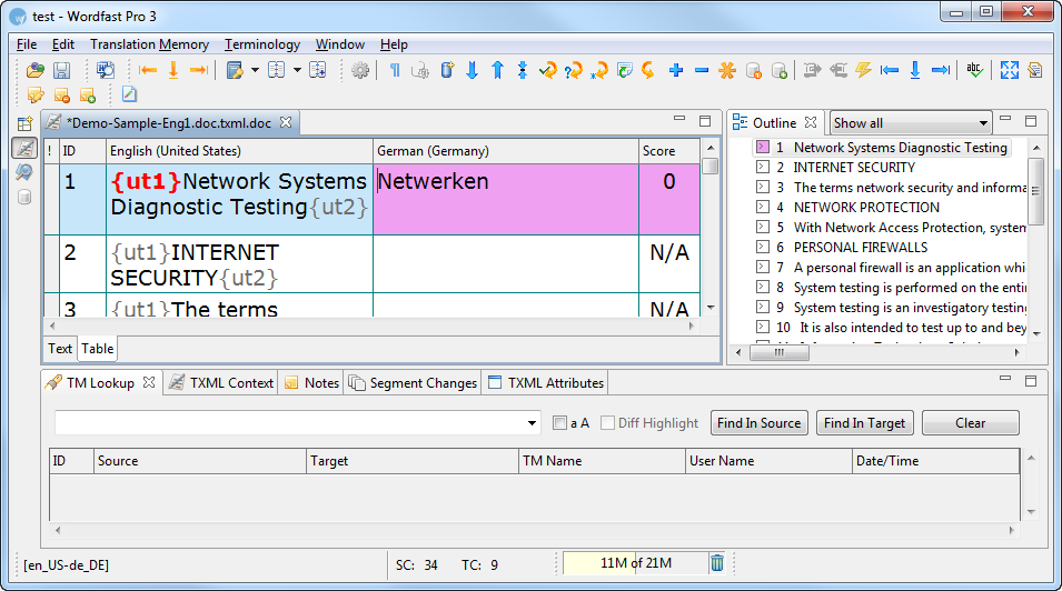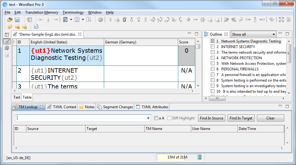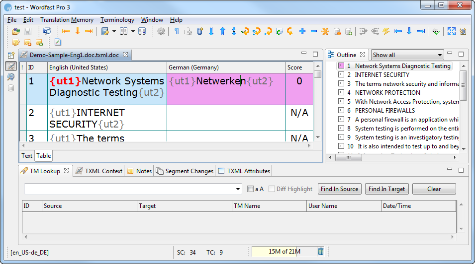 A tag is inline text that is not translatable, for example, HTML code within a sentence. Target segments should have the same tags as the source segment. However, depending on the language, sometimes a tag is not needed. If you try to save a target segment with missing tags, a warning message appears. Find below an example of a source segment with two tags: