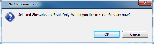selected glossary is read-only, you will be prompted to set up a new glossary.